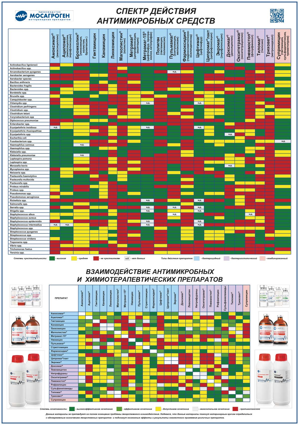 Плакат "Спектр действия антимикробных средств и их взаимодействие"